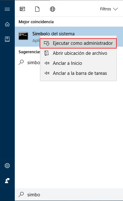 - Abrimos el Símbolo del sistema (cmd) ejecutandolo como Administrador